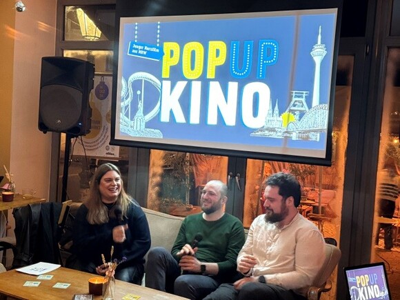 Da schlug das Filmfan-Herz höher! Mit einem schönen und humorvollen Filmprogramm aus den DrehMOMENTE-Einreichungen der vergangenen Jahre wurde es Mitte Dezember gemütlich und lustig beim diesjährigen Pop Up Kino in DIE FLIESE Düsseldorf. Moderiert von Vanessa Linnemann von jung&talentiert, die im Gespräch mit den talentierten Filmemacher*innen auch Fragen vom interessierten Publikum beantwortete, wurde bis zur letzten Minute der Veranstaltung herzhaft gelacht und gespannt gelauscht.
